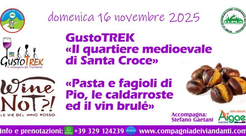 Veroli WINE NOT Le Vie del Vino Rosso «GustoTrek: il quartiere medioevale del Borgo Santa Croce con pasta e fagioli e caldarroste»