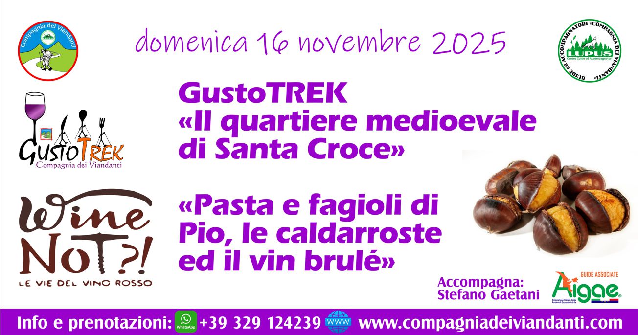 Veroli WINE NOT Le Vie del Vino Rosso «GustoTrek: il quartiere medioevale del Borgo Santa Croce con pasta e fagioli e caldarroste»