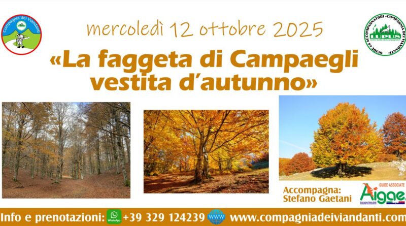Appena si imbocca uno dei sentieri che si diramano da Campaegli, ci si ritrova avvolti da una foresta di faggi maestosi che in questa stagione si colorano di oro, rame e rosso fuoco, creando luci ammalianti, soprattutto nelle radure dove la luce filtra tra i rami e sembra di essere soli con la montagna.